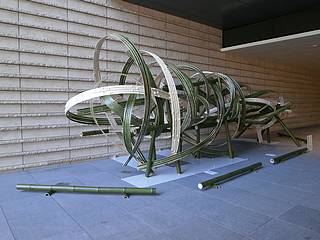 - 昼頃 小金井公園。先生の作品のあげ花手伝い。「小金井市民まつり」の屋台は一応出ているので、韓国チヂミと豚汁でお昼ご飯。しかし本降りの雨なので人出はほとんどない。それでも食べもの屋さんには多少人がいるが、特設ステージに出演する人にはほとほと気の毒な光景。あげ花前にこちらもたてもの園に入ってあちこち作品を見て回る。何事もなく無事終了。