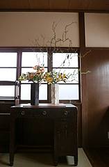 - 4月1日・2日に行われる春の小金井市民まつりに合わせて小金井公園内にある江戸東京たてもの園での「花席」に参加。「花席」とはあまり耳慣れない言葉だが、小金井文化連盟には華道部と茶道部があり、茶道部の「茶席」と対になっている言葉だと思う。たくさんの流派の方が参加して、たてもの園の建物の部屋に花をいけて見て貰うという、規模は大きくないが、少し変わった花の展覧会です。