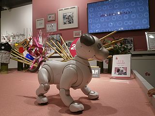 - ソニーのコーナーで犬のアイボが居た。女の子らしく「さくら」という名前だった。動きが滑らかでかわいいと言えばかわいい。ついつい写真を撮る。しかし、コロコロ転がったり、縁に近寄ったりするのは写真右手に小さな女の子がいるからである。オバサンが「さくらチャン」と呼んでもさくらはこっちへ来ない。女の子はすっかり夢中で離れようとせず、カメラを買いに来たというお父さんは難儀していた。