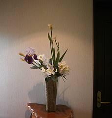 - 午前中帳簿整理。午後からお花 紅ツツジ(久留米ツツジなんだろうなぁと思う)、小菊、アイリス。ツツジやアイリスなんてもう初夏か!?と思う。